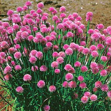 Chives are pretty enough to be used ornamentally as well as in cuisine. They make fine companions to roses, keeping away many destructive pests with their strong scent while beautifying the garden with their large ball of lavender-pink blooms. They are a good "guard" for any plant that needs a little muscle to keep out nibbling visitors.