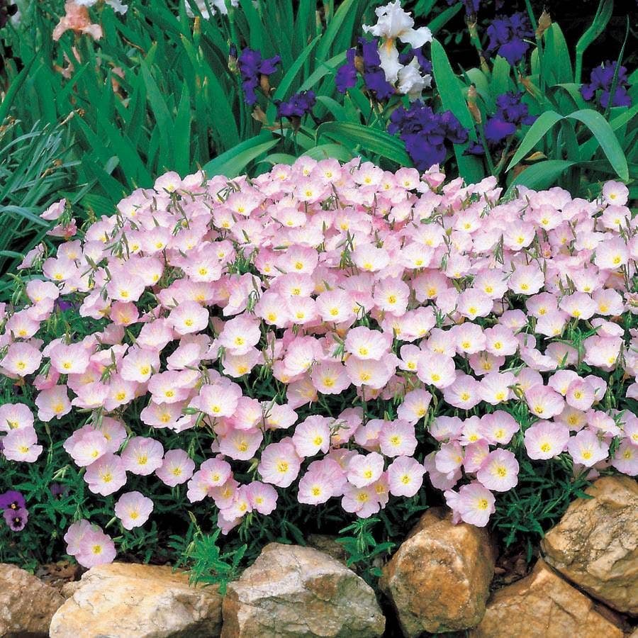 Eager to reseed, it quickly establishes handsome, mounded colonies just 6 to 12 inches tall that return for years of beauty! The cup-shaped blooms are blush-pink at the petal tips, shading to pure white toward the tiny yellow center. 2 inches across, they jostle one another for position atop the low-growing plant, almost hiding the foliage. And the bloom is successive waves from earliest summer till the onset of cooler fall temperatures. A fine choice for the front of the border or naturalized in an open meadowland setting. And if you like this pink species, try mixing it with gleaming white Innocence! Direct-sow this seed in late summer, autumn, or spring, or begin indoors in earliest spring to transplant as soon as the weather warms up. Space the plants about 6 to 8 inches apart for a dense carpet of color. Enjoy! Zones 5-8. Pkt is 50 seeds.