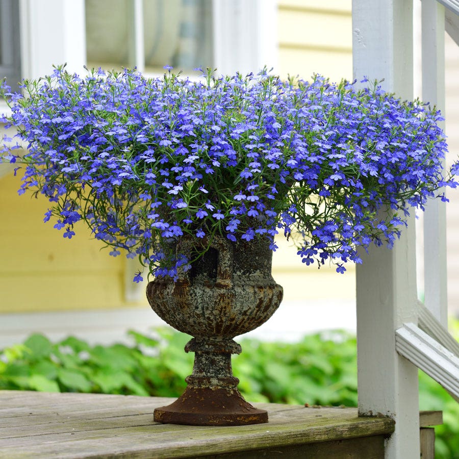 One of the best sources of color for the cool-season container garden, Fountain Blue offers larger, earlier blooms than most other Lobelia varieties. You will love the floriferous nature of this cascading plant, which tumbles over the sides of hanging baskets, window boxes, and other containers.