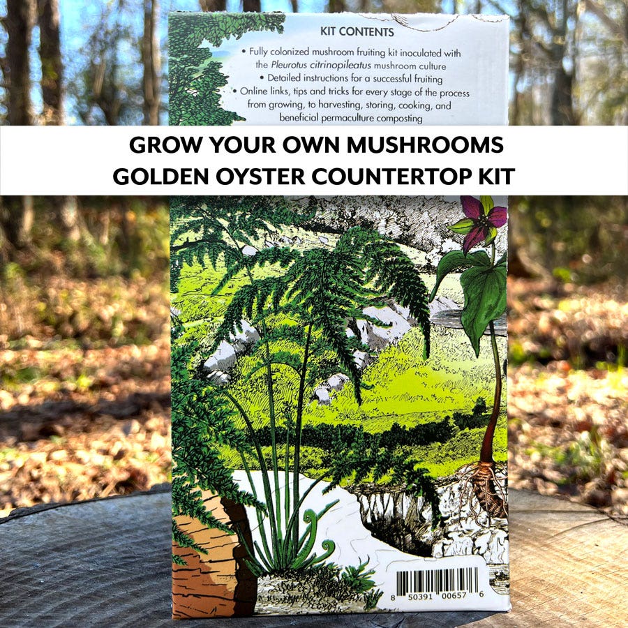 In addition, the Golden Oyster Countertop Kit is environmentally friendlymade with compostable substrate and bio-degradable cardboard and plastic bags.