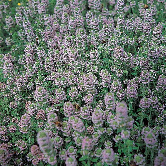 This plant is a woody perennial (technically a shrub), which will bring you four to five good years of foliage before it should be replaced. (The leaves begin to lose their flavor as the stems grow woodier with age.) If allowed to go to flower, it is a marvelous bee attractant, but if you want to use the foliage in cooking, pinch off the buds as soon as you see them, because the flavor deteriorates when the plant blooms. Thyme is a very pretty flowering plant, however, so we recommend that you also plant a stand of spreading, magnificently flowering Mother of Thyme in the garden to satisfy the bees as well as your own desire for blooms.