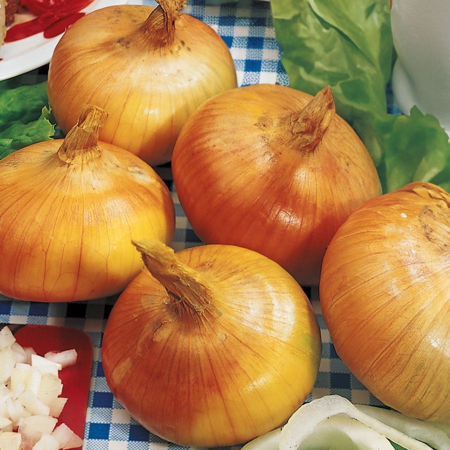 Onion sets are small onion bulbs grown in the previous season. The partially formed bulbets are around ¾ inch in diameter, making them easier to plant than seed. They develop into full-size bulbs quickly after planting, in approximately 3½ months. Sets tend to produce stronger, more vigorous plants compared to seed, ensuring larger yields.
