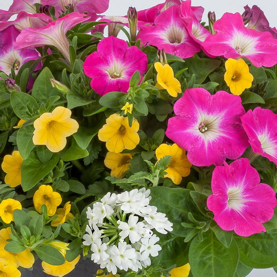 •Cabrio™ Yellow CalibrachoaPerfect for containers, hanging baskets, and even garden beds, Kwik Kombos™ are designed to continually bloom in a wide range of climates, spring and summer, and are tested and selected for matching uniformity and longevity. For best results, add 1 block to every 10- to 12-inch container and 2 blocks to every 14- to 16-inch container, place in a sunny location, and fertilize with Jack's® Classic Petunia FeED 20-6-22.