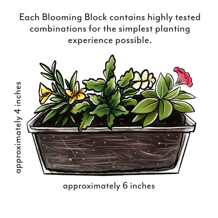 Our Blooming Block annuals come in a nutrient-rich blockno more worrying about damaging delicate roots! Each Kwik Kombos™ Chloe's™ Mix includes one plant each of the following varieties of flowers: