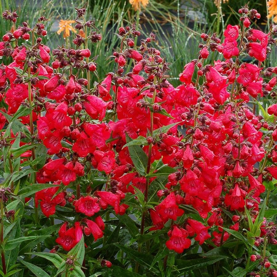 A pollinator magnet that you will want to steal for your cut flower arrangements, Cha Cha™ 'Cherry' Penstemon is one of the brightest blooms in the sunny border. These neon-red flowers, clustered thickly atop tall, upright plants, begin in late spring or early summer and just won't stop until autumn is underway.