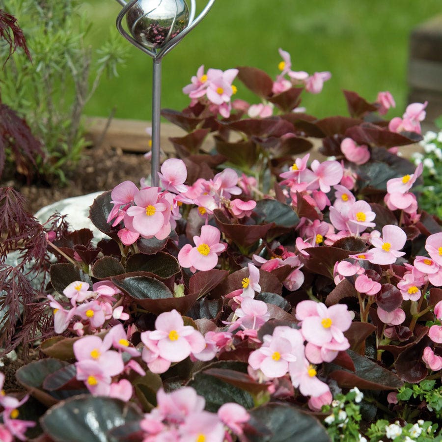 Typically grown as an annual, Cocktail™ Brandy™ Begonia, an F1 hybrid, is a tender perennial (winter hardy in Zones 10-11) offering summer through fall interest. Heavy- and ever-blooming, Cocktail Brandy blankets its thick, waxy, dark bronze leaves in loose clusters of pink flowers throughout the season. And the flowers are pollinator friendly.