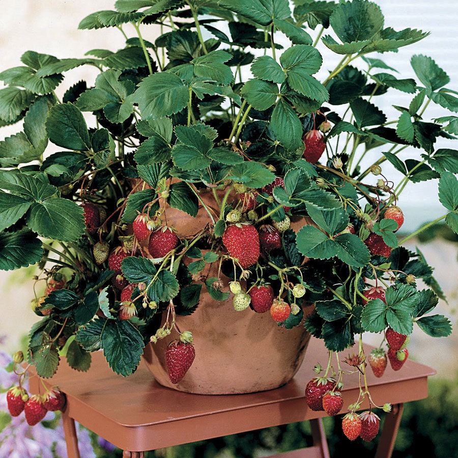 Fragaria 'Quinault' Strawberry is an everbearing or "day-neutral" plant, so it will keep producing from late spring through summer4 to 5 months of solid crops isn't unusual. And it's self-pollinating, which means you don't have to grow a big field of these plants to get good yields. In fact, 'Quinault' is a great choice for pots (as well as the garden, of course), because it sets berries even in unrooted runners.