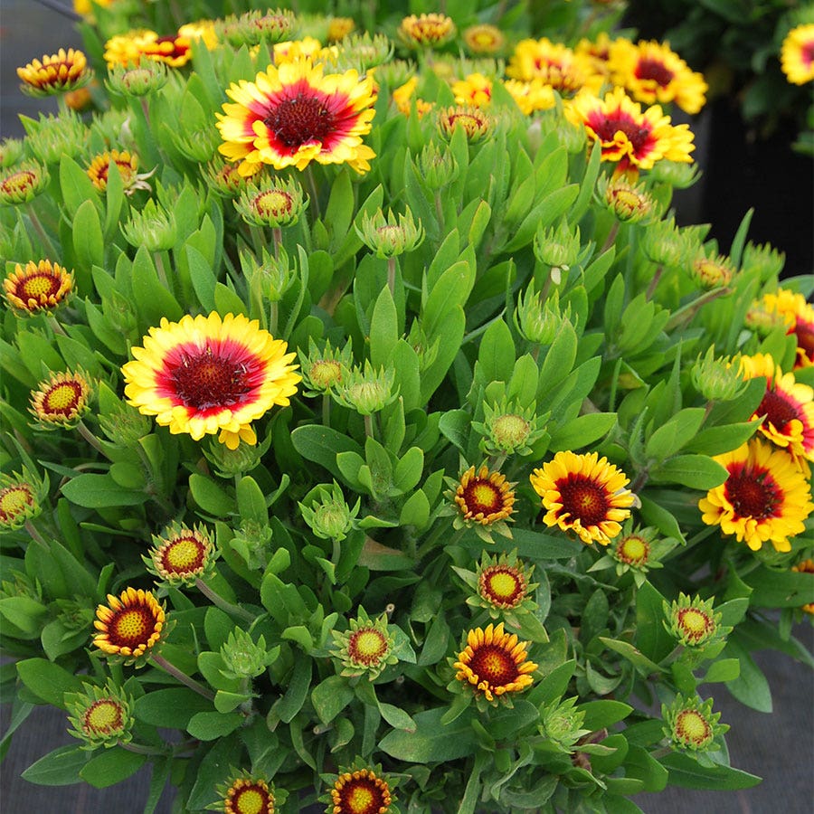 Beauty is in the eye of the beholder, or in this case, any eyes that behold this magnificent blanket flower! Its dazzling bi-color display looks gorgeous electrifying the landscape or bursting from a vase. Those pretty ruby and yellow petals attract more than just human eyes, they draw in plenty of butterflies as well! 'Sunset Halo' is an enthusiastic grower with a particularly long bloom time making it a wonderful season extender! As durable as it is lovely, this blanket flower resists deer and rabbits with ease and is incredibly easy to maintain. Find a home for them in normal or sandy soil and don't water it too much because it actually prefers dryer soil. Few perennials are easier to grow than this selection of the native species. It is tolerant of unseasonable heat, humidity, cold, and drought. Poorly fertile soils are no problem. Give this plant plenty of food and water this first season, and it will make itself in home in the sunny perennial border for many years to come. Plant then in masses or tuck them into your borders for a pop of sizzling color!