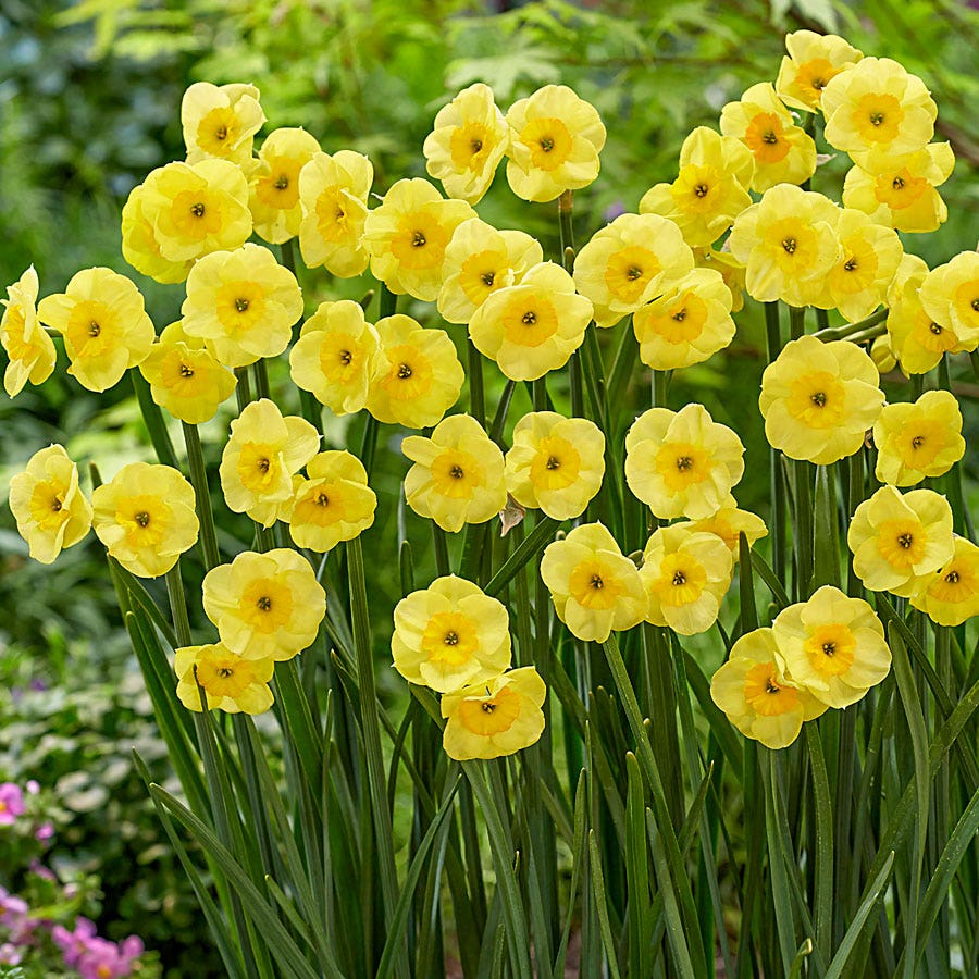 This deer-resistant blend is highly versatile, making it perfect for planting in groups or masses to create striking displays in mixed beds, front borders, or patio pots. The daffodils are particularly effective when planted in large sweeping drifts across open areas, under deciduous trees, or in smaller groupings in front of shrubs. They also mix beautifully with ground covers and other spring-blooming bulbs, adding layers of texture and color to your garden. Additionally, these daffodils can be forced indoors, bringing their cheerful blooms and pleasant fragrances into your home during the winter months.