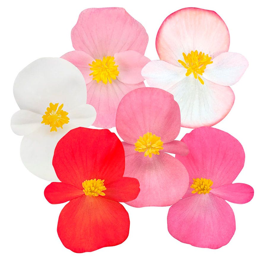 Members of the Semperflorens Cultorum Group, commonly called wax begonias, Cocktail Mix varieties have a compact, bushy, mounding habit. Shown to best effect massed or grouped, waxed begonia is ideal for small flowerbeds and containers and makes nice edging.