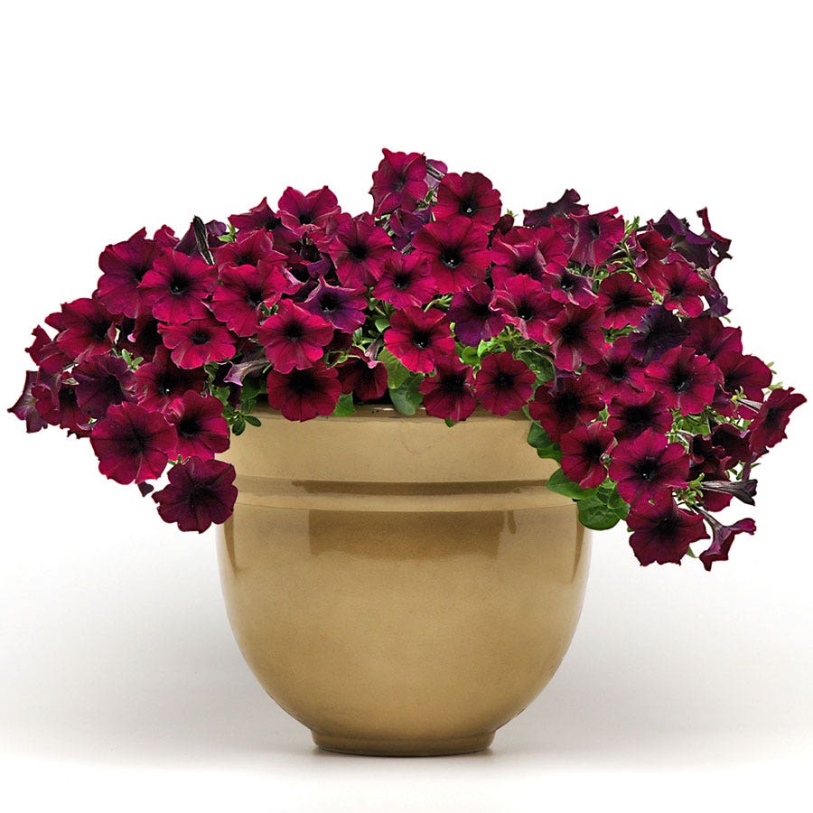 Petunia Wave® has taken the gardening world by storm since its introduction a few years ago. Its spreading habit is just stunning, covering ground at the rate of several inches every single day, and trailing lots of big, colorful blooms as it goes. Easy Wave Burgundy Velour doesn't reach quite as far as the older Waves, but it stands up "taller," offering a more manageable and attractive shape for hanging baskets, window boxes, and flowerpots of all kinds.