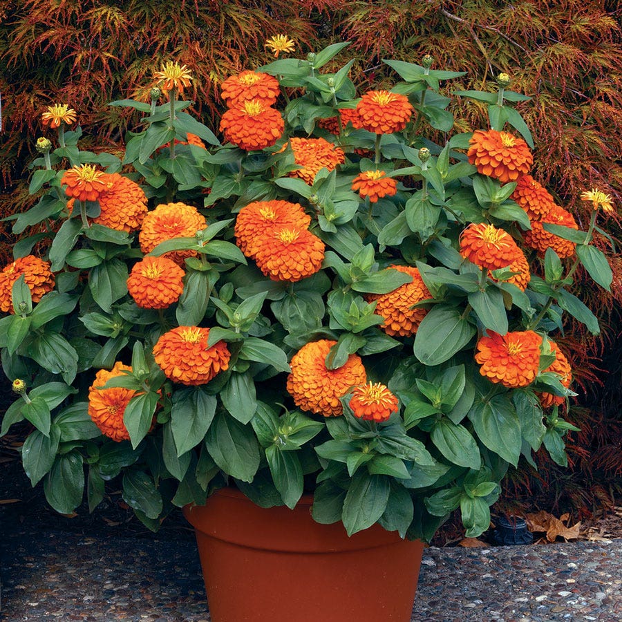 The flowers are packed with layer after layer of petals, with a frilly yellow center to cap them off. Expect them to range from 4 to 5 inches wide, and to glow pumpkin-orange over a long, long summer season. Magellan blooms just 6 weeks or so after sowing, so you're guaranteed a long and colorful summer.