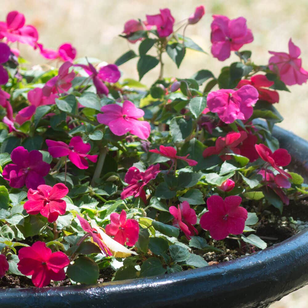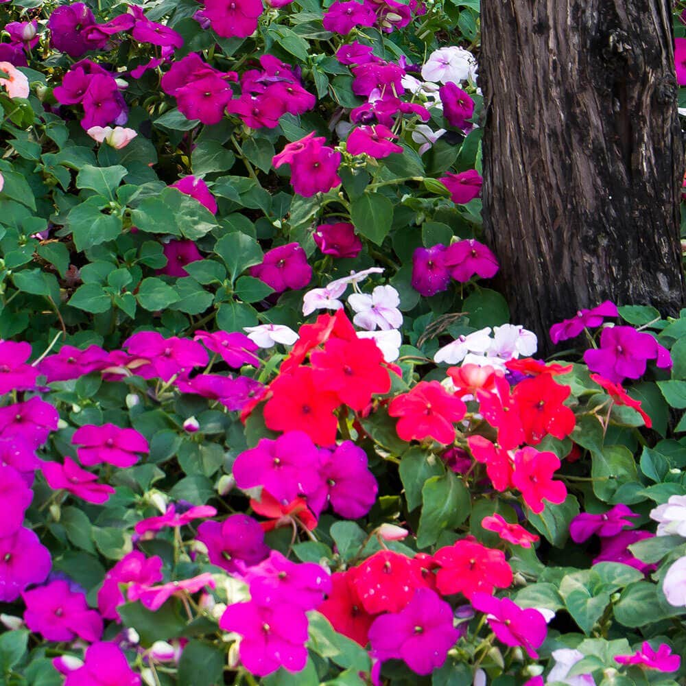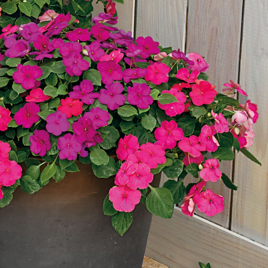 In the Park Seed Shady Lady II Glow Girl Hybrid Impatiens, you get three unusual shades that combine beautifully. Bold salmon, hot rose (the shade called Venus), and violet are a unique and breathtaking trio. Each is saturated with hot color that stands up to extreme heat very nicely. And you need never deadhead the Shady Ladies.