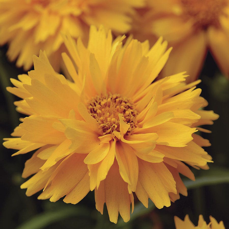 Humble tickseed has never been so well-dressed. Presto Gold Coreopsis is a double-flowered coreopsis from seed that boasts brilliant golden blooms beginning before spring has passed and often continuing into autumn. Large and very showy, they cover this super-compact plant, which is just as easy to grow and adaptable to differing climates as its plain-jane cousins.
