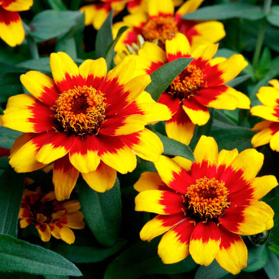 Disease-resistant Profusion Red Yellow Bicolor Zinnia have a low-growing, compact habit and a floriferous nature, blooming continuously in durable, long-lived flowers.