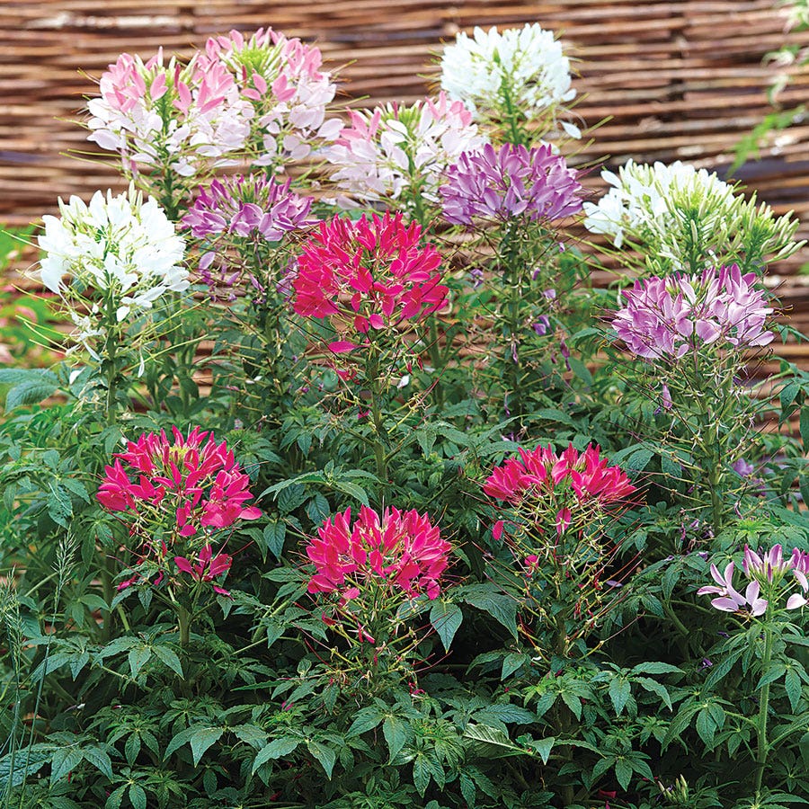 If you like Sparkler but would prefer a patterned planting according to color, try our economical collection. You get 1 pkt each of all 4 separate colors, for a Cleome garden extraordinaire.