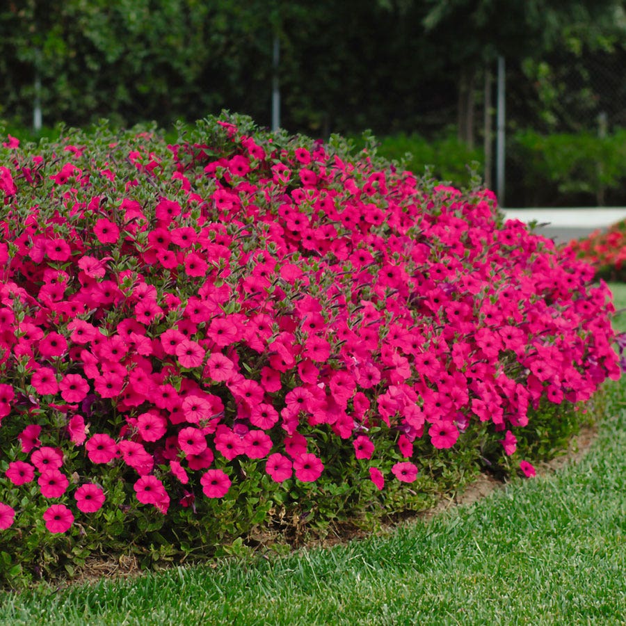 Hot tropical color all over compact, very versatile plants transforms the garden or container into a summer paradise. Hot Pink is the newest arrival in the award-winning Tidal Wave series of trailing petuniasbut like AAS winner Silver, it does far more than simply trail. Amazingly versatile, this petunia is called a "hedgiflora"but we just call it "wonderful".