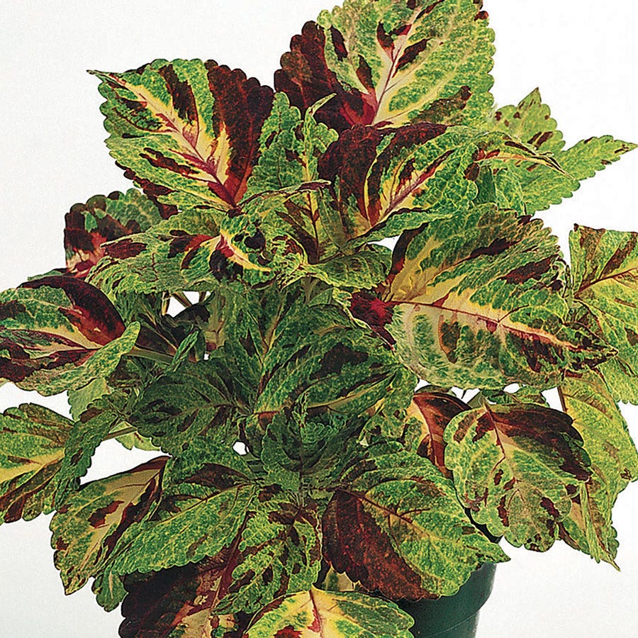 Uniform and basal-branching, Wizard Mosaic has a compact, upright, mounded habit and fast growth rate. Seedlings never need pinching, since the plants are naturally bushy and grow close to the ground. Shown to best effect when grouped or massed, coleus makes beautiful border edging and is great filler for a container garden, outdoors or indoors.