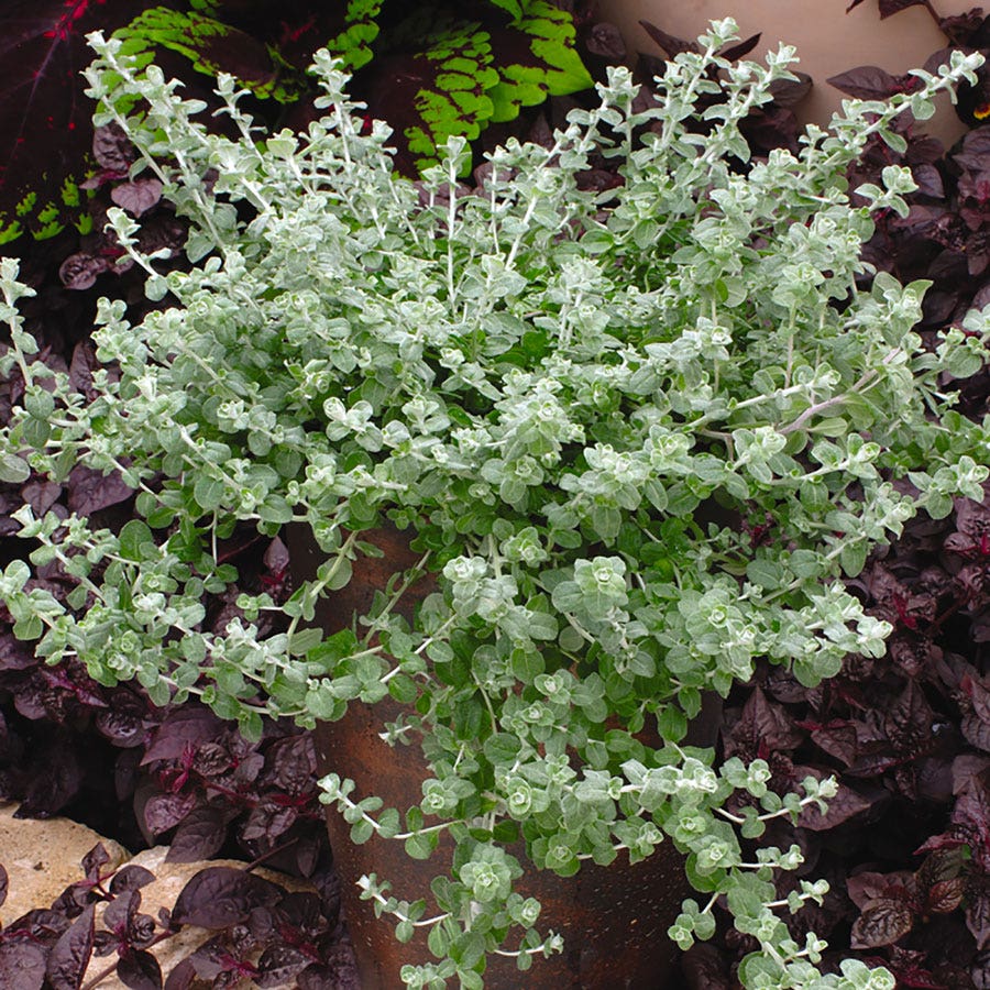 At last, you can grow the best foliage plant we know for containers of all types FROM SEED instead of paying top dollar for plants. Helichrysum is such a boon for the basket, window box, and large planter. The small, silvery leaves are as soft as Lamb's Ear, and they look terrific for months on end. Annuals may come and go, but helichrysum sees you through from spring till the end of fall.