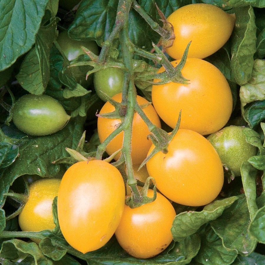 Golden Rave Hybrid is one of the new Romanita tomatoes everyone's talking aboutthe paste-sized tomato combining the meaty flavor of a Roma with the high sugar content of a grape type. Just 2 inches long, perfectly golden, with no cracking, it's a delightful "baby Roma".