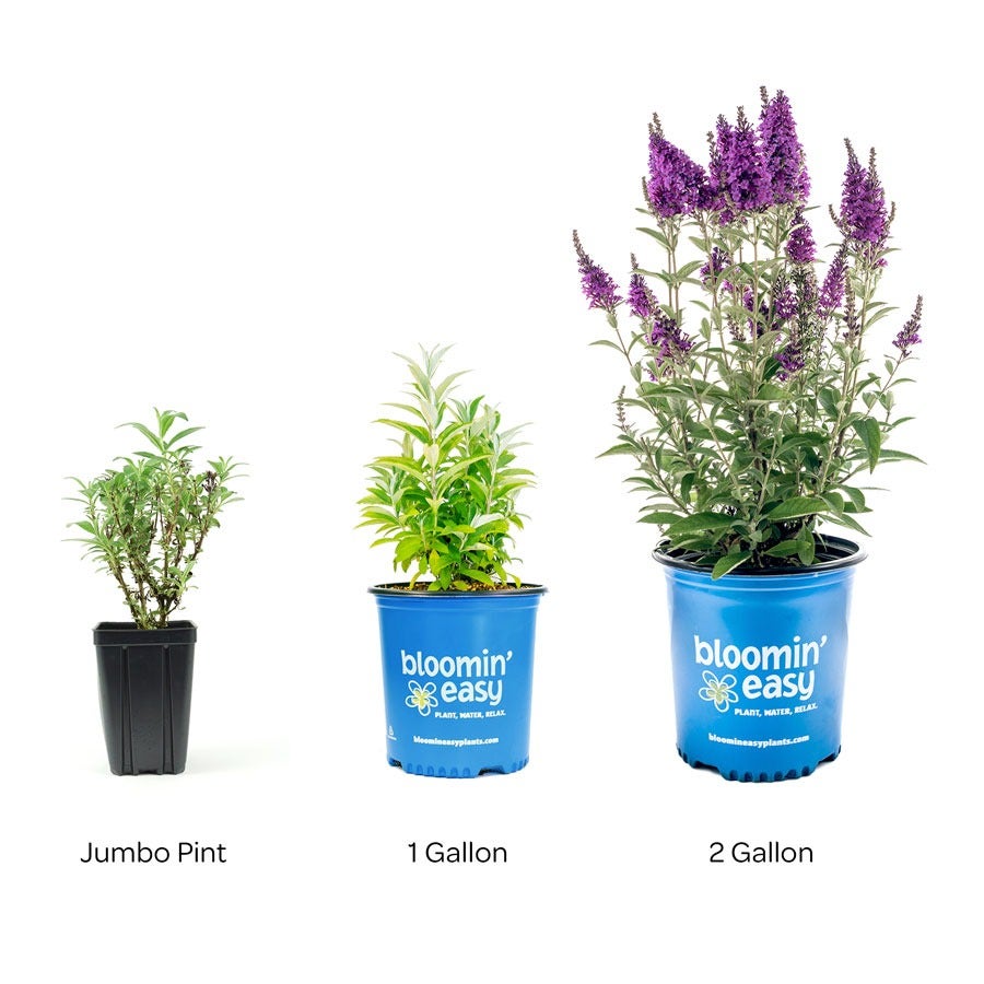 A Bloomin' Easy® variety, Buddleia Birthday Cake™ is a flowering deciduous shrub offering 3 seasons of interest, blooming and reblooming summer and fall, sometimes to first frost. The large flower spikes, dense with purple blooms, are borne on long stems that stand erect, well above the foliage, reminiscent of candles on a birthday cake (hence the name). The nectar-rich flowers are mildly but sweetly fragrant and extremely pollinator friendly, attracting tons of bees, butterflies, and hummingbirds.