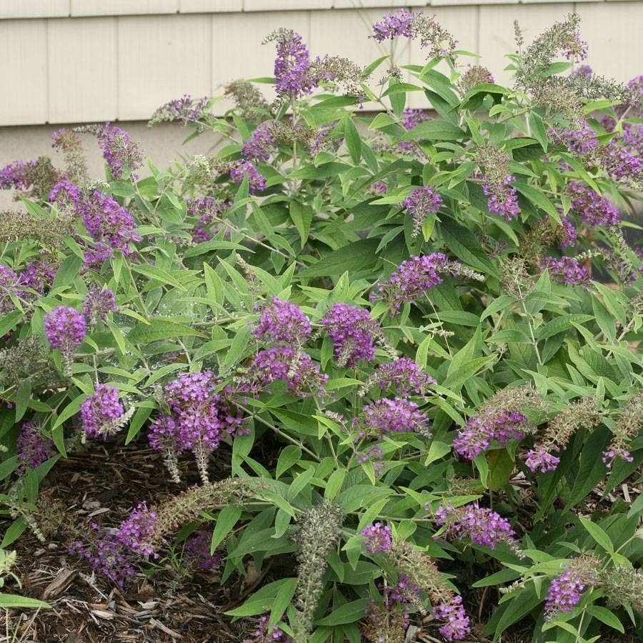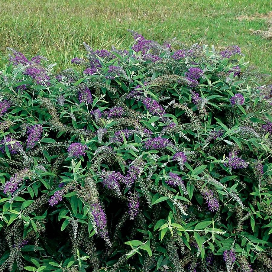 'Purple Haze' reaches a height of 24-36" and a width of 36-42". Great for use as a groundcover or in perennial gardens and mixed borders, this beautiful Butterfly Bush needs only occasional watering once it's established, and since it's a sterile variety, it won't produce any unwanted seedlings.Remember to always choose non-invasive Buddleia to protect your local habitats. Typically unpalatable to deer, it grows quickly and has shown itself to be tolerant of both heat and drought, making it a wonderful choice for areas that don't receive a large rainfall. It can even be grown in containers, bringing fantastic color and texture to your patio. You're going to love this new easy-care Buddleia.