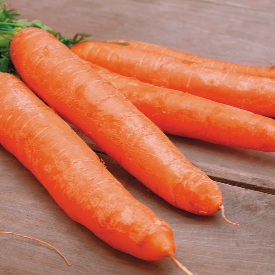 This extra-sweet organic baby carrot really is the size of your little finger. Growing only about 4 inches long, it is a classic baby variety with a crisp consistency and juicy bite that most everyone finds irresistible. The dark orange roots are smooth and do not taper.