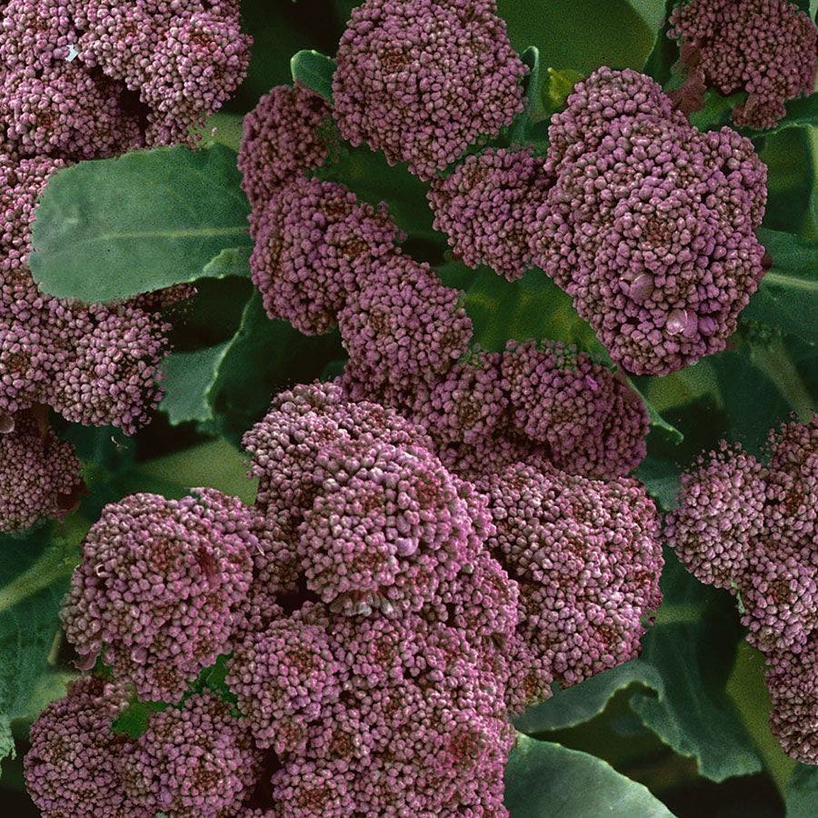 An Old English type, Purple Sprouting Broccoli is grown as a flower or head vegetable. The plant sets small purple heads that have a sweet flavor and turn green when cooked. Broccoli is considered a superfood for its nutrient rich content, having a high (top 20) Aggregate Nutrient Density Index score (ANDI), or micronutrient-per-calorie density. It is high in fiber and vitamins C and K. It is a great source of calcium and iron and contains antioxidants.