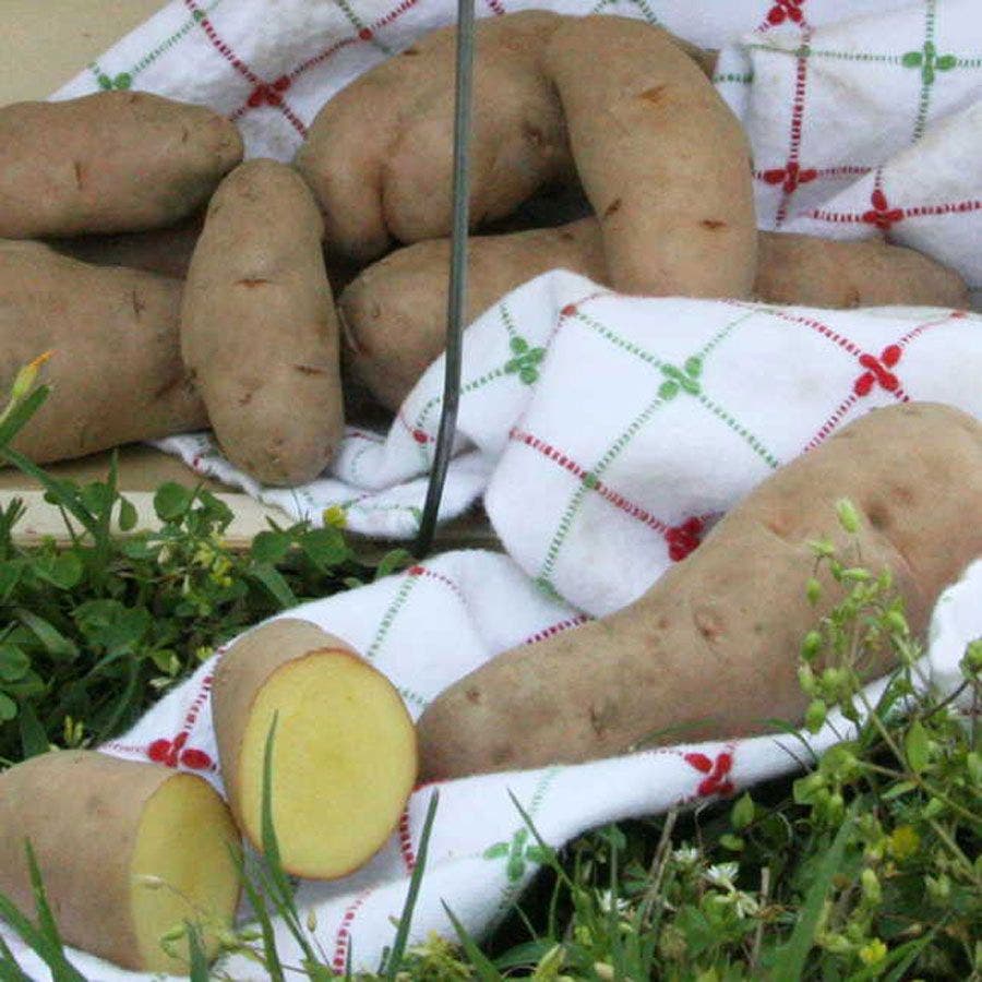 The most popular fingerling, and one bite will tell you why. 'Rose Finn Apple' Potato is an heirloom variety with mouth-watering little finger-shaped spuds 2 to 5 ounces each and stuffed with savory flavor. A midseason variety, it matures in late summer and can be used as a boiler, baker, or fryer. Just don't add butterthis rich spud already has more scrumptious goodness than it knows what to do with.