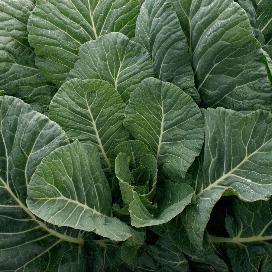 A hybrid variety, Top Chop Collard is grown as a leafy vegetable, forming a loose bouquet of large leaves. The plant has a fast regrowth and very high bolt resistance, making for bountiful harvests. The broad, flat, dark green leaves have good texture and sweet flavor. Collard is considered a superfood for its nutrient rich content, having a high (top 20) Aggregate Nutrient Density Index score (ANDI), or micronutrient-per-calorie density. It is an excellent source of fiber, calcium, and vitamins A, C, and K, and a good source of vitamin E, vitamin B-6, iron, magnesium, and phosphorus.