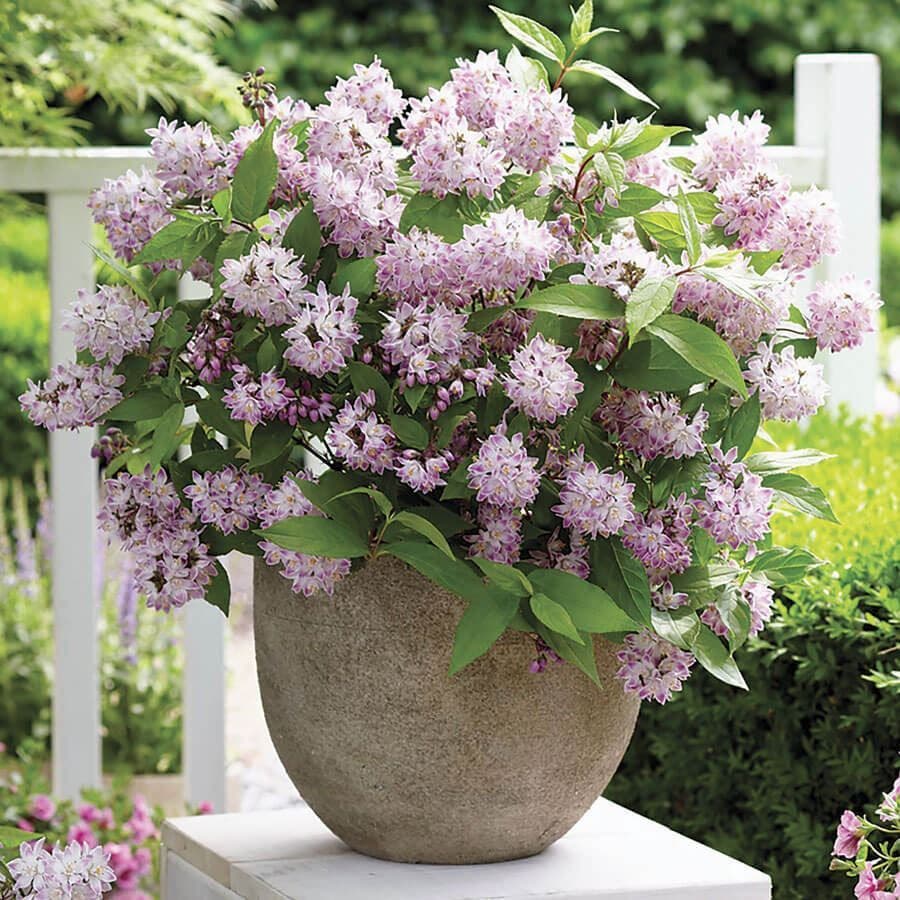 Easy to grow and low maintenance, Deutzia Raspberry Sundae performs best in moist but well-drained soil, in full to dappled sunlight. But it's happiest in a warm, sunny spot. It branches easily but maintains a compact habit, only growing to about 4'x 4'. So it will fit almost anywhere, and it's perfect for a border, a patio container, or for any small space.