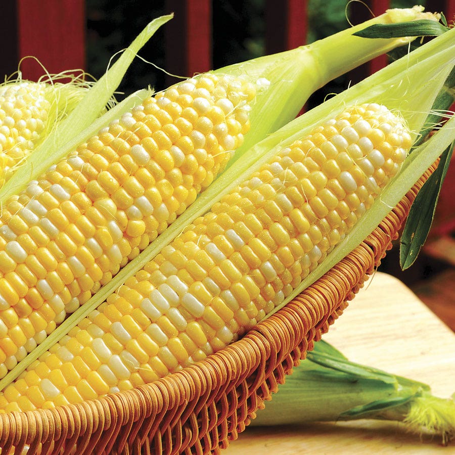 This early maturing, tender bicolor of outstanding eating quality is one of the finest super sweets you will ever grow . . . or eat. The cylindrical 9 inch ears are a pleasure to look at, with 16 to 18 rows of white and yellow kernelssymmetrical, tightly packed, and plump.
