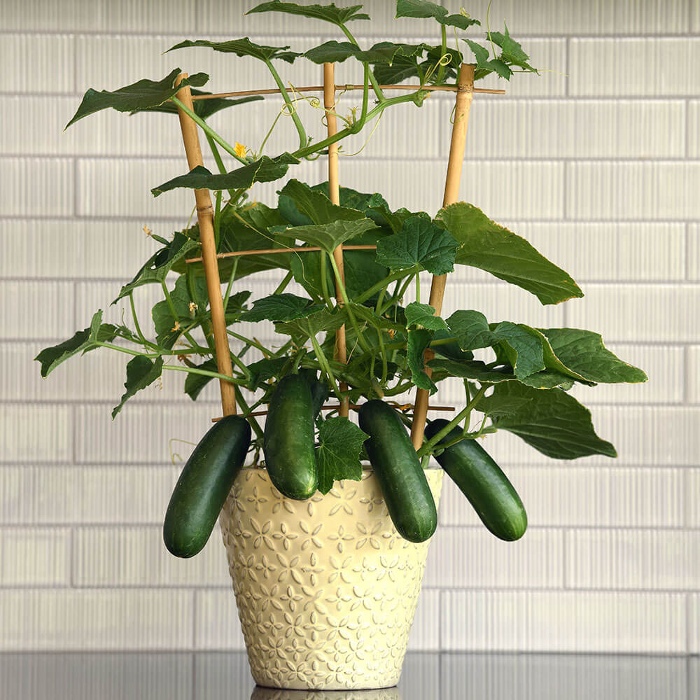 The newest addition to the Kitchen Minis® Collection, Quick Snack Cucumber produces an abundance of small cocktail size fruit, great for snacking and salads. And the best part, you don't need a garden to grow these cukes! Plants are perfect for container growing on your patio, balcony, or even your kitchen countertop. All they need is plenty of sunlight and water to produce an abundance of fruit, which is best picked at 1 ½ to 2