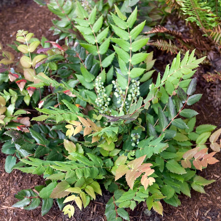 This stunning evergreen shrub will fill your garden with stunning foliage and charming berries that your birds will love. This shrub forms a loose groundcover with elegant emerald leaves and panicles of pale yellow flowers during the spring that mature to lovely blue berries in the fall. It is a durable and adaptable to difficult growing situation. It would look great as a groundcover under some dogwood trees or let it spread as a groundcover on a steep slope. It thrives in full sun to part shade and it's drought tolerant once established. Let this shrub spread it's charm in your landscape with interesting foliage, spreading habit, yellow blooms, and berries you and your wildlife will love. Add it to your garden today!