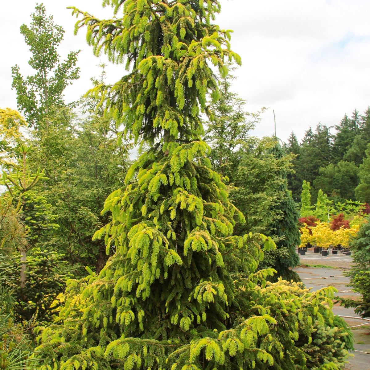 More commonly known as a Norway Spruce, this ornamental tree is a handsome upright evergreen with semi-weeping branches and gold frosted needles. Colors this vivid usually only last a season or two on most plants, but this variety keeps its bold colors all year long! Along with its lovely bi-colored foliage this tree is also notable for its sleek, cocoa and honey-colored cones. This tree stays relatively compact and it grows slowly - it takes about a decade for it to get up to 7 feet. Use this petite Norway Spruce in specimen plantings and as year round foliage accents for an extra wilderness feel to your landscape.