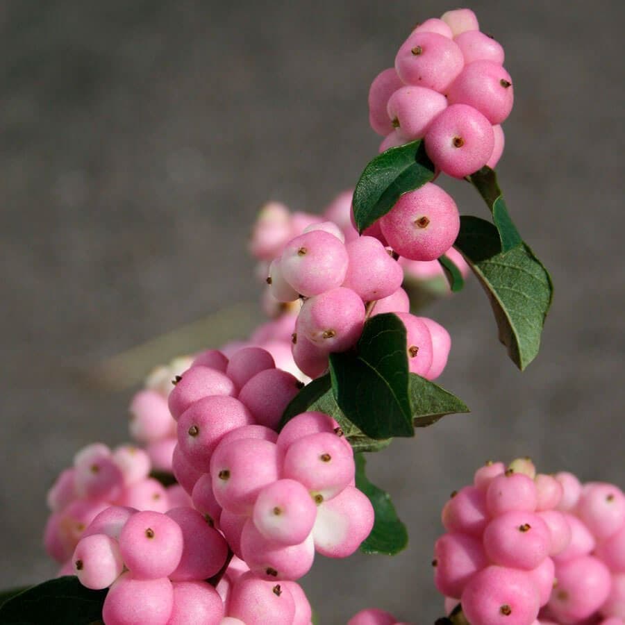 This snow berry is a well-branched, upright hardy shrub covered from top to bottom in delicate pink flowers in early summer followed by clusters of plump, pearl-like, dark pink berries in early fall, adding vibrant color to the garden as many plants are fading. The stems are welcome additions to cut bouquets.
