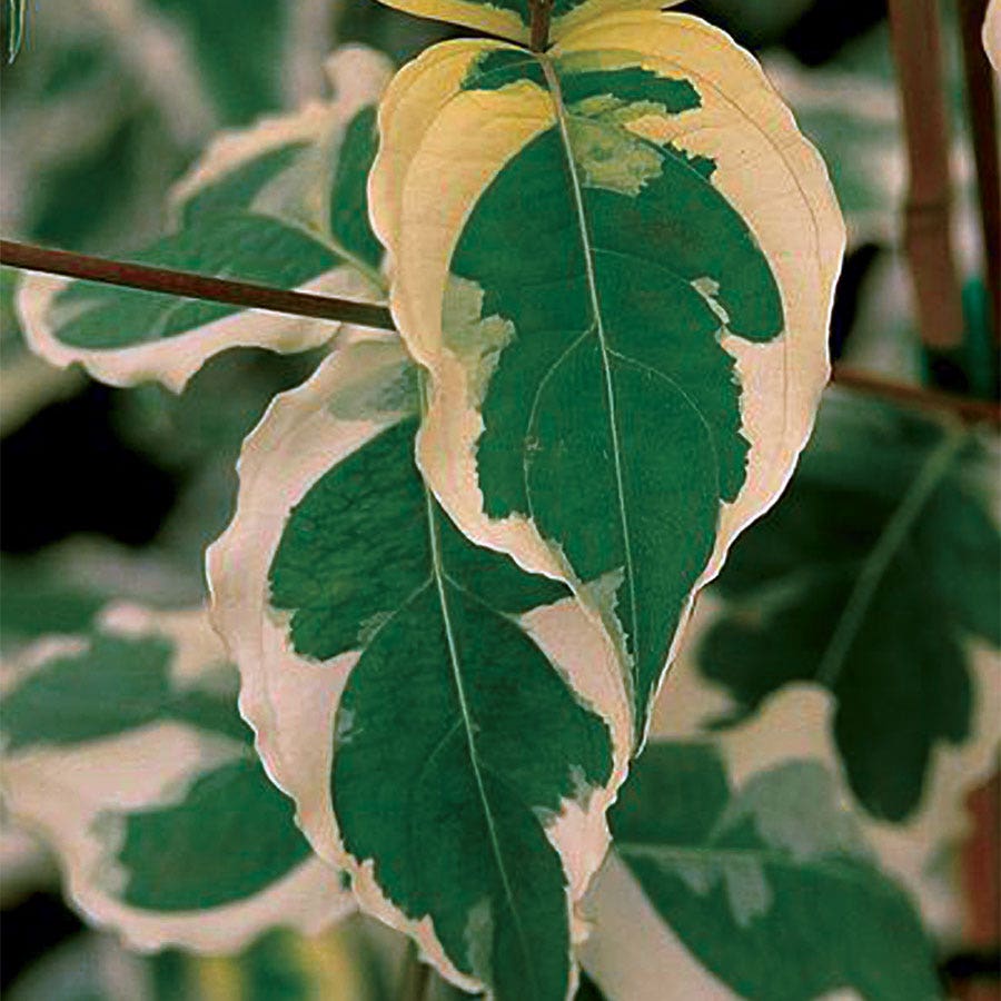 This dogwood features beautiful variegated foliage that emerges with a unique and eye catching pink-white margin. As it matures, the foliage changes to a grey-green with bright white slightly wavy edges. When late spring arrives, it brings with it large star shaped white blooms. The cooler weather of fall brings a change of color to the autumnal tones of red-orange with pink margins and red berries. This is truly a multi-season tree with year round interest!