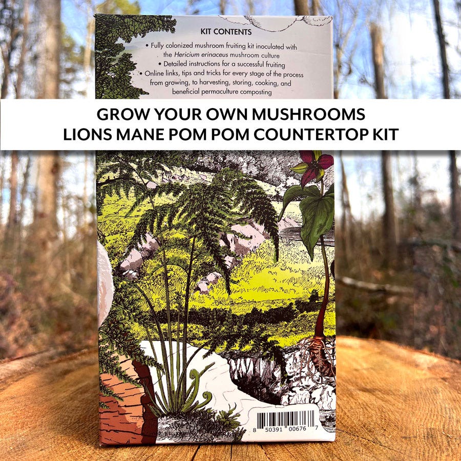 In addition, the Lion's Mane Pom Pom Countertop Kit is environmentally friendlymade with compostable substrate and bio-degradable cardboard and plastic bags.