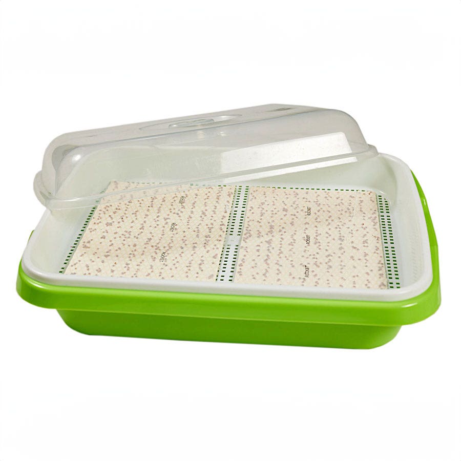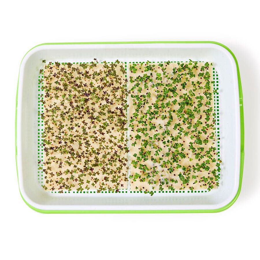 The water-soluble tissue dissolves as the seeds sprout, providing evenly spaced microgreens and eliminating the risk of seeds washing away or bunching up.