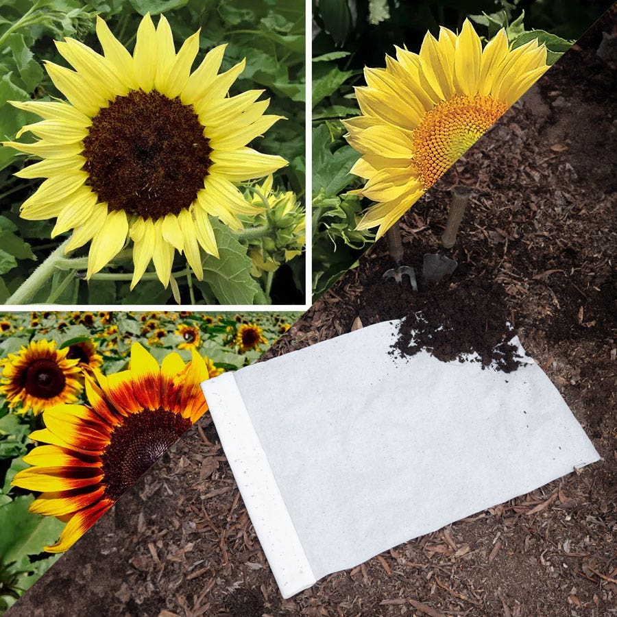 Take advantage of the simplicity offered by our seeded mats. Each sunflower seed mat includes pre-spaced, non-GMO seeds embedded in biodegradable tissue. This design ensures even planting and minimal maintenance, as the seeded mats dissolve quickly upon watering, leaving perfectly spaced sunflowers. Just lay the seeded mats on prepared soil, cover lightly, and water to start your sunflower journey.