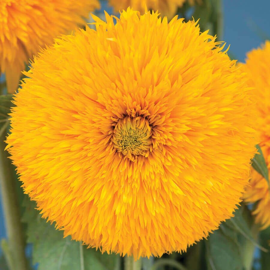 Plant Double Sunking in spring, and in summer, it blooms in large, fringy, golden yellow fully double flowers. Borne in small clusters on stiff, course stems, the fun and frilly powderpuff flowers continue over a long season and last a long time in a vase. Be sure to cut sunflowers in the early morning to encourage longer-lasting blooms.