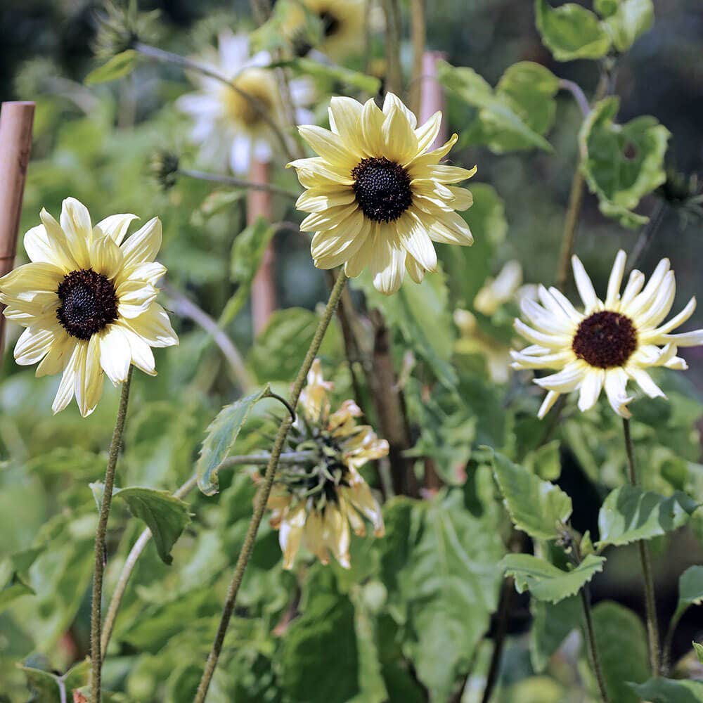 'Italian White' Sunflower invites you to bring a touch of elegance and resilience to your garden. Whether you're looking to create a serene backdrop or fill your home with striking, long-stemmed bouquets, these white sunflowers promise a garden filled with creamy yellow luminosity and graceful charm.
