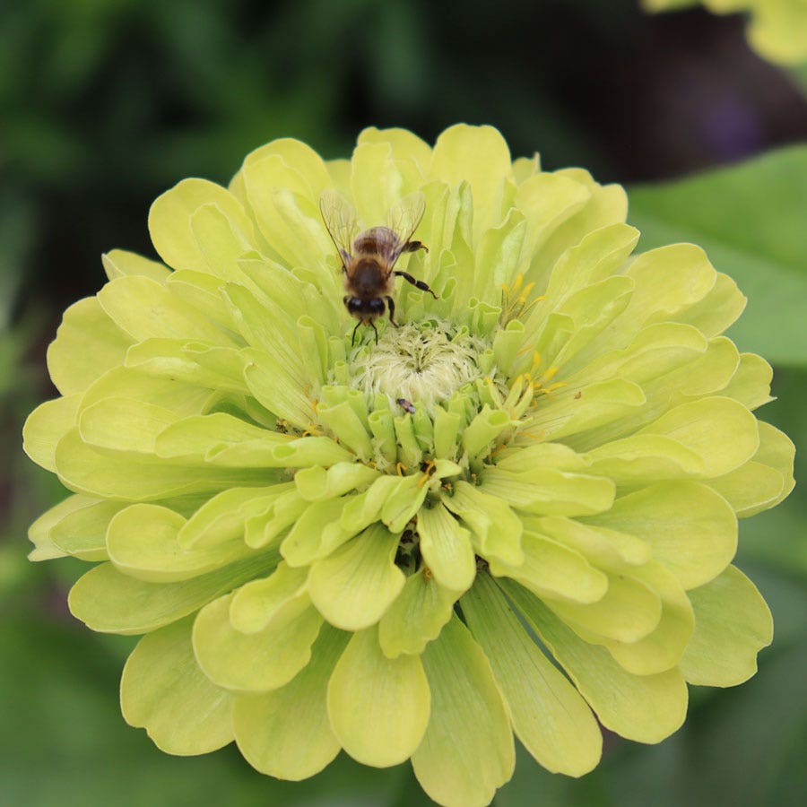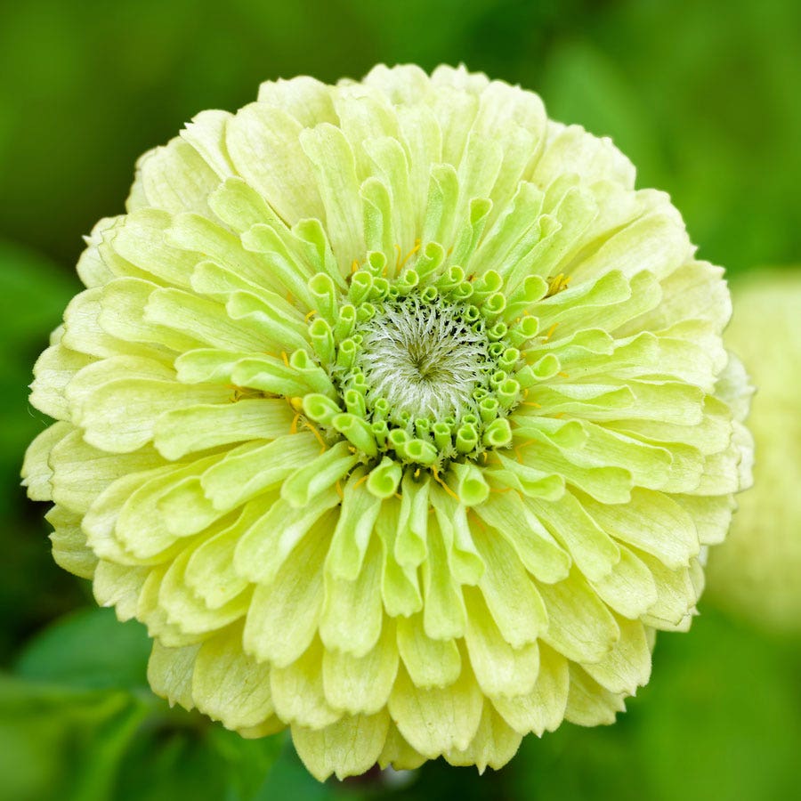 Extremely easy to grow from seed, these green zinnias prefer sunny locations protected from strong winds with rich, organic, well-draining loam or soil raked to a fine tilth, having an acidic pH of 5.8 to 6.2. While zinnias are low maintenance, pinching young plants promotes a more compact, bushier plant, and deadheading spent flowers keeps zinnias blooming.