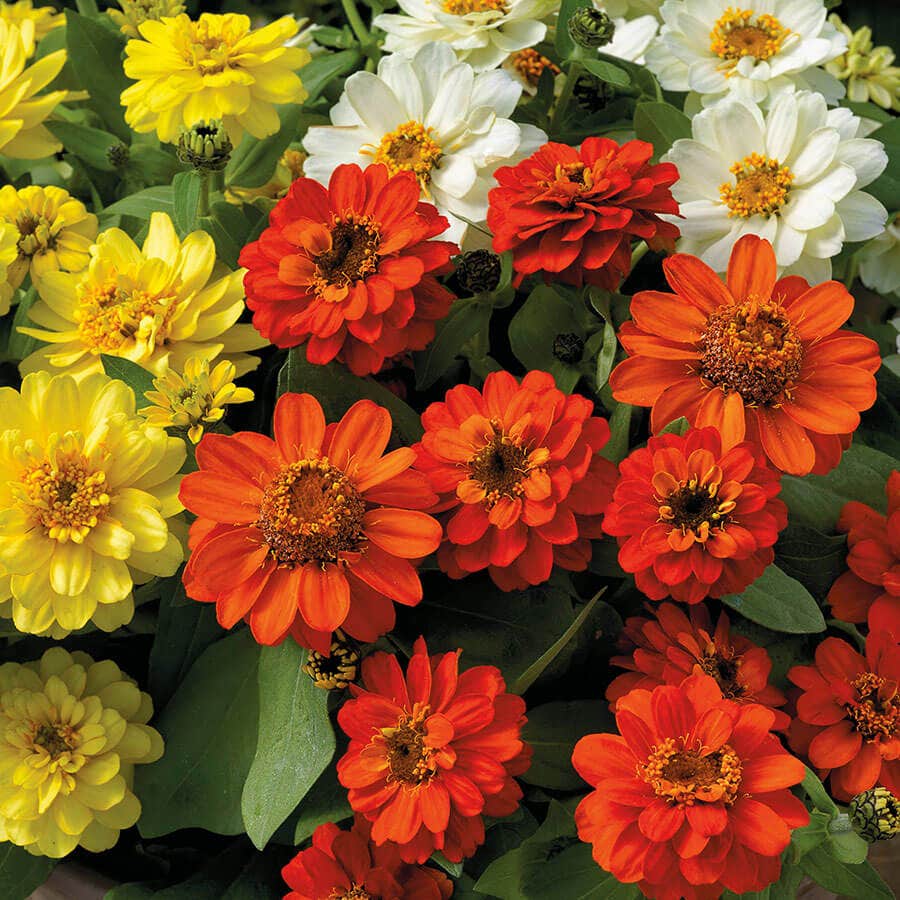 Move over daisies and petunias. These Profusion Double Sunrise Mix Zinnias are blanketed in big, vibrantly colored double blooms and stand up to tough conditions like hot temperatures and harsh drought. And if you forget to water the Profusion Double Sunrise Mix Zinnias, they'll act like it never happened.