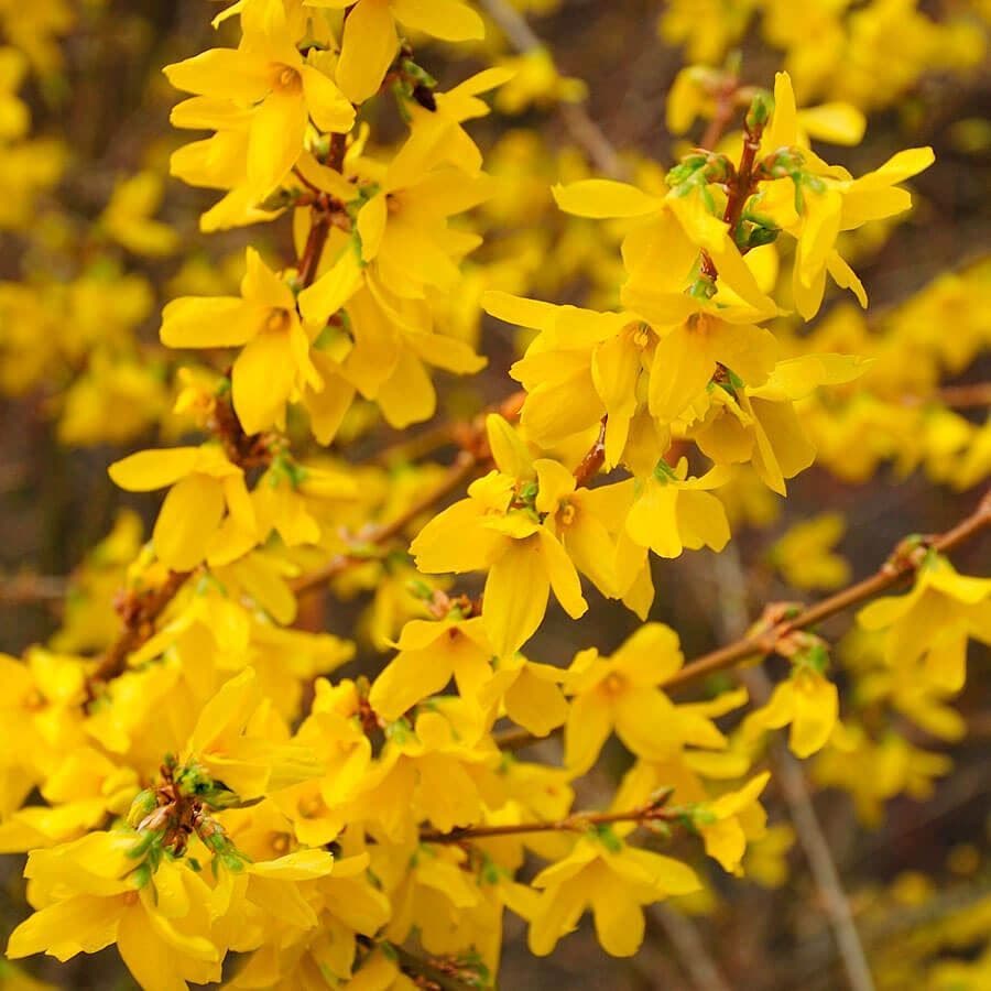 Gold Tide® forsythia is a low, spreading shrub. A dwarf, it typically grows to approximately 2 feet high and 4 feet wide and puts on an outstanding display of yellow flowers in late winter to early spring. The flowers appear before the fresh and feathery light green foliage. Blooms appear on old wood, at least 2 years old. The shrub should be pruned at once after flowering. If pruned later, flower buds for the following spring could be removed.