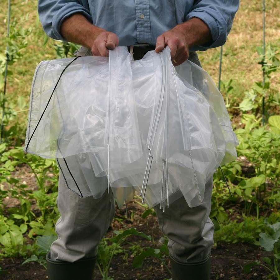 The Standard Poly Easy Tunnel helps retain moisture and heat while keeping out all the features that destroy your crops, from rabbits and deer to carrot flies and aphids, not to mention frost, strong winds, and scorching summer heat. You can water right over it; the droplets will penetrate perfectly. And its so easy to use, because it's all one piece: you just unfold it over your crop during the season, then pull it up and fold it flat when not in use.