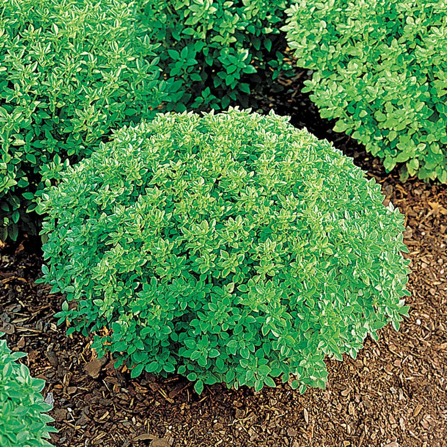 This variety grows only 10 inches high and wide, creating a perfectly uniform sphere. The tiny medium green leaves are only 1/2-inch long. Small spikes of white flowers arise in summer; if you are growing Minette for culinary purposes, pinch off the buds. If it is an ornamental or guard plant in your garden, let the flowers open and the butterflies visit.