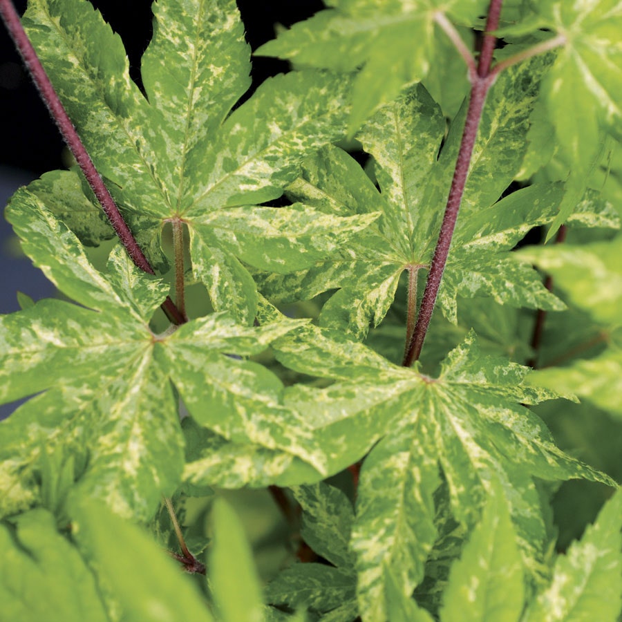 The long, slender leaves include patches of light, contrasting light green and cream hues. The delicate creamy variegation plays beautifully off the beautiful maroon stems and rich red fall foliage! In the fall these speckled green, cream, and white foliage age into the autumn tones of orange and red. 'Kumoi Moi Nishiki' is a perfect specimen for variegated foliage interest.