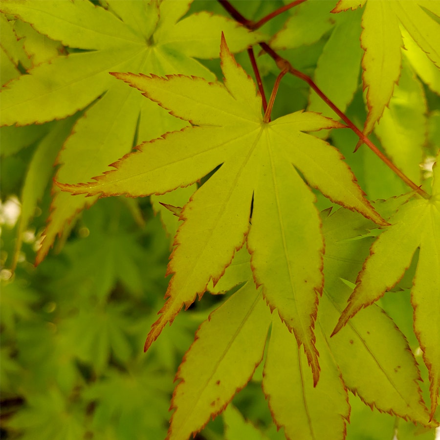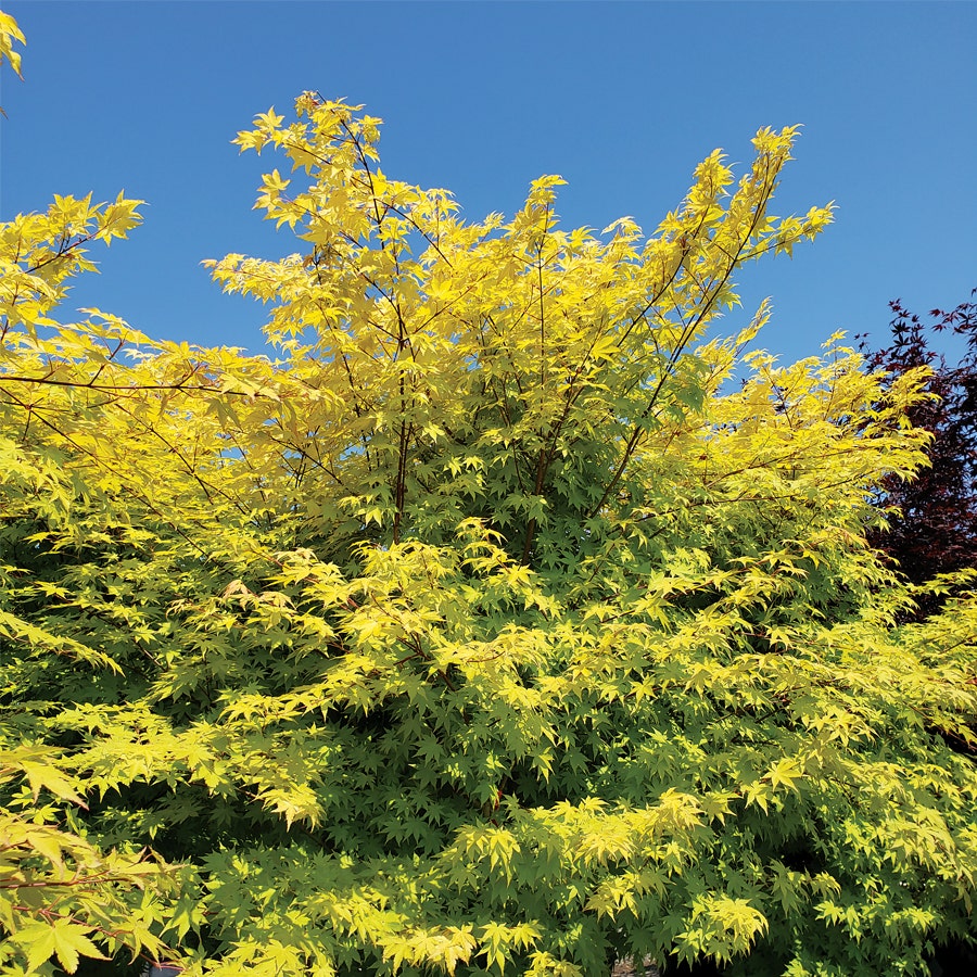 An upright tree with palmate leaves and a medium growth rate, 'Summer Gold' reaches a height of 8-12' at maturity. Plant in full sun to part sun, and bask in its brilliance! Its vibrant golden yellow shades are especially spectacular when grown next to red-leafed varieties! Zones 6-9.