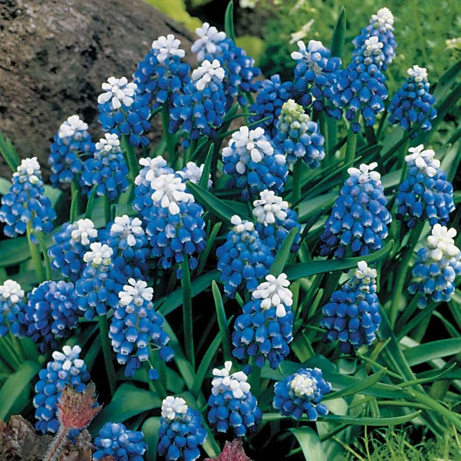 Just 6 to 8 inches tall and wide, 'Mount Hood' Grape Hyacinth is ideal as a groundcover, container choice, or garden accent for sun or shade. This rapidly multiplying variety blooms year after year in any light from full sun to partial shade. 'Mount Hood' Grape Hyacinths dense spires of rich blue increase each year as it colonizes. And it's ideal beneath trees and shrubs or among larger spring-blooming bulbs, such as species tulips and early daffodils. It also makes a lovely succession planting for early crocus.